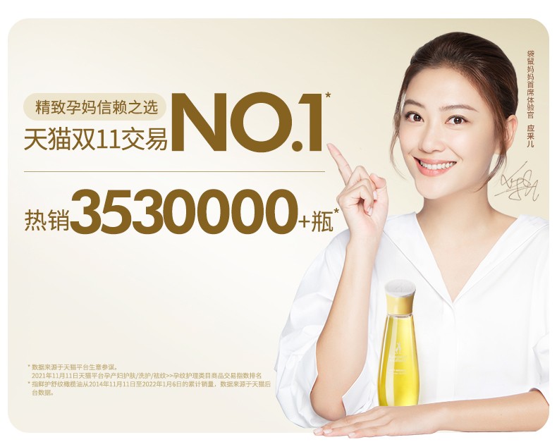 「2」*指“袋鼠妈妈旗舰店”2014年-2021年连续8年双11期间在天猫平台孕产护肤产品销量第一,数据来源于2014年-2021年双11当日生意参谋天猫官方数据统计。