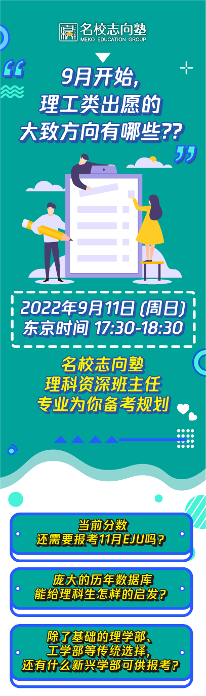 名校志向塾:自9月起理科生可报考的日本大学都有哪些?