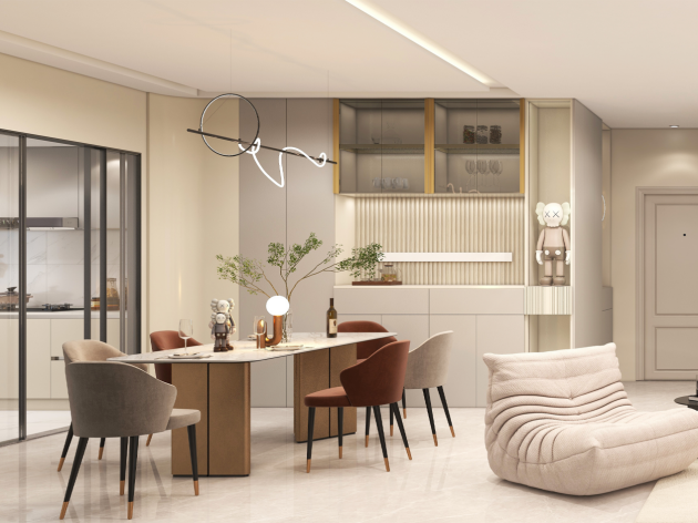本案设计师结合屋主需求,将智能元素与当下大热的轻奢奶油风巧妙融合,既有家居空间具备的功能性,亦有着浪漫雅致空灵的情调,彰显独特品味和艺术格调。
