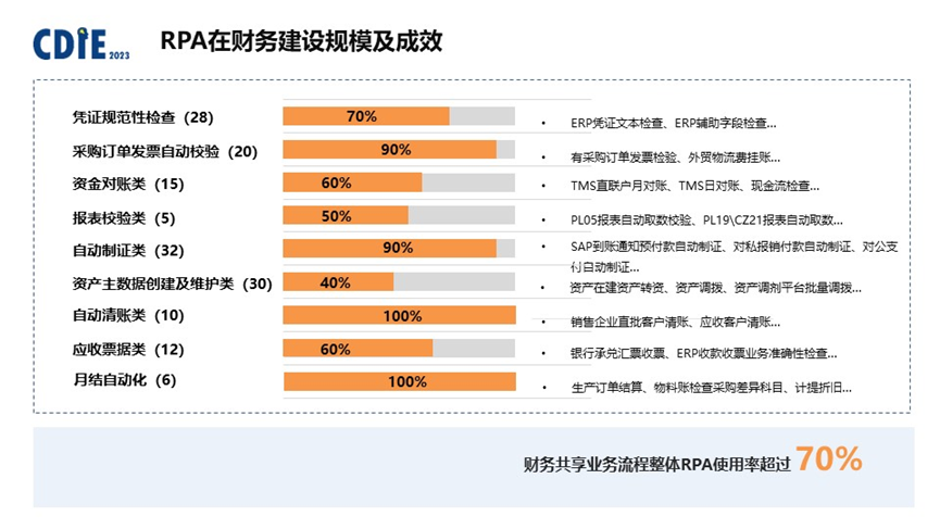目前中石化财务共享业务流程整体RPA使用率超过70%,总计400+自动化流程上线,标志着中石化RPA建设进入了规模化发展阶段。