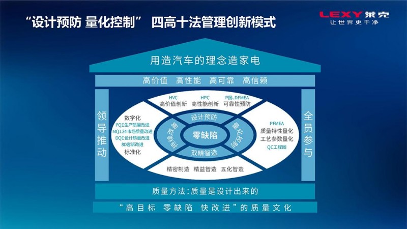 莱克电气深知,质量不仅是品牌树立形象的前提,更是品牌效益的源泉。因此,企业不断投入研发,提升制造工艺,确保每一款产品都能达到高标准、高质量。围绕产品“零缺陷”目标和“高价值、高性能、高可靠、高信赖”四高要求,提出了“质量是设计出来的”“用造汽车的理念造家电”的质量理念,莱克电气实现了产品从设计到生产的全链条质量管理。