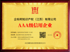 企标邦荣获AAA信用等级证书,迈向诚信经营新高度 2024年8月3日,企标邦知识产权(江苏)有限公司隆重宣布荣获AAA信用等级证书。这一殊荣不仅体现了企标邦在知识产权服务领域的卓越表现和诚信经营,更为公司在市场上的信誉和