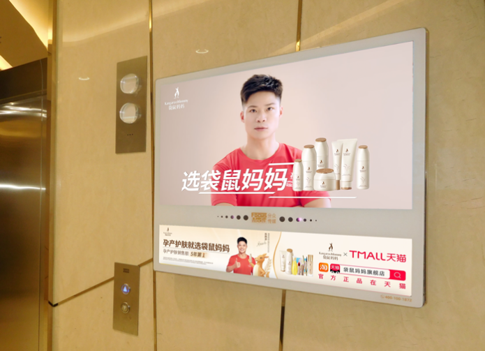 而为了进一步增加品牌曝光,扩大品牌势能,袋鼠妈妈与分众电梯媒体合作,通过分众的引爆设施对主流消费者进行饱和攻击。