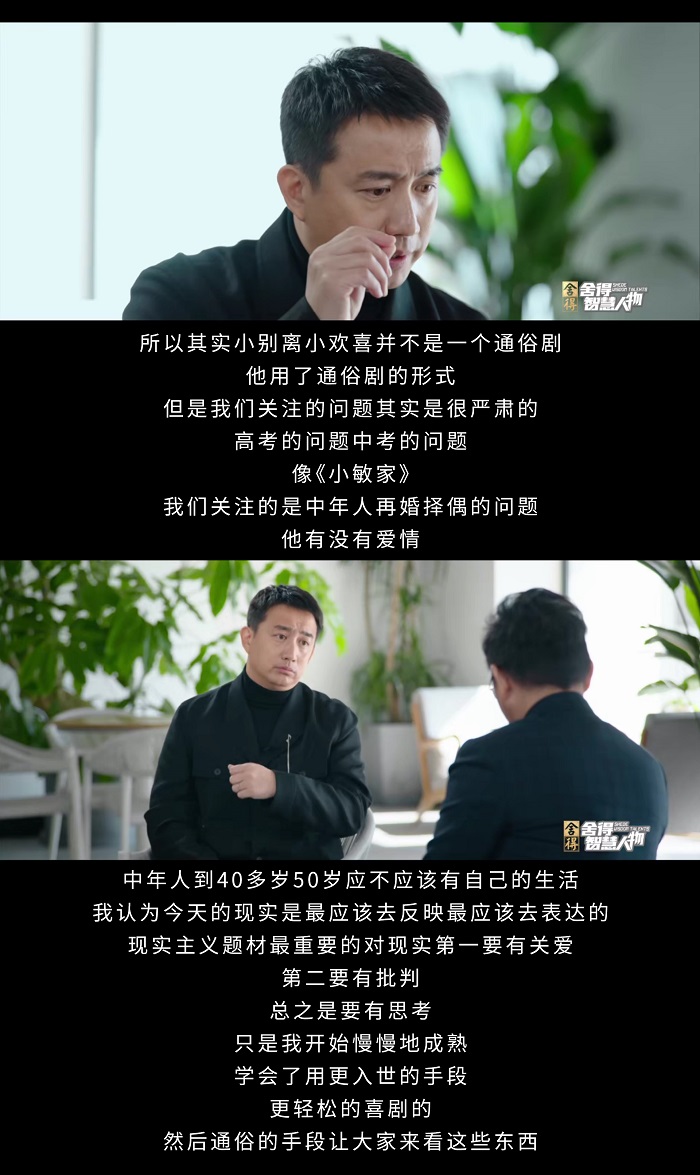 黄磊还追求多面的事业发展,他导过电影,舞台剧,也做戏剧节,做歌手,还涉猎商业……黄磊表示,自己的职业规划往往是听凭兴趣,他曾在综艺《向往的生活》中担任多季嘉宾,原因就是黄磊自己也享受这档综艺,“哪有这种机会专门跑到一地儿……然后在那剁剁肉馅,包包饺子……这种节目你就觉得好玩。”舍得是一种选择,选择热爱,方能坚持,选择兴趣,才有权衡。