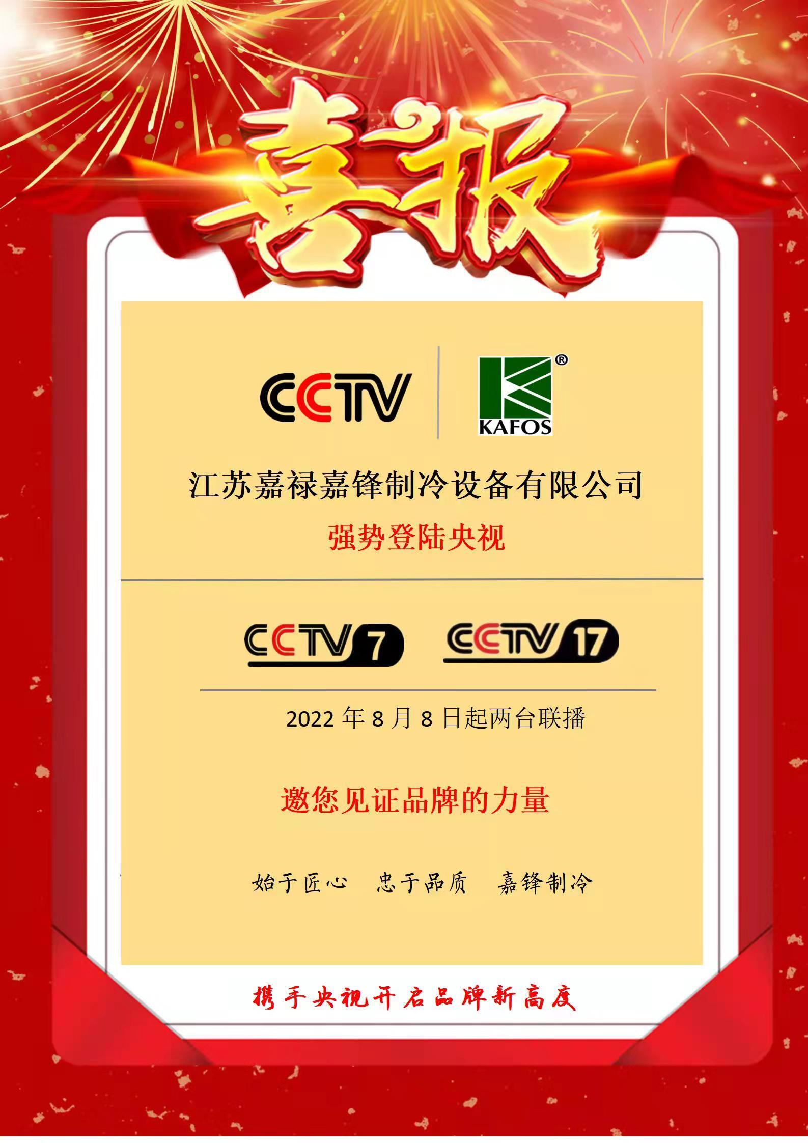 江苏嘉禄嘉锋制冷设备有限公司登陆中央电视台两台联播