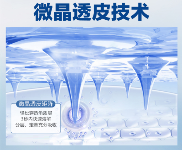 主要是由于产品成分里包含纳米级微晶,是高教授团队历经了16年匠心研发在经过冷冻干燥和生物萃取后,得到了直径为50-200μm微米的针状结晶。每个产品有1300针微针排列,200微米精准直达真皮层。