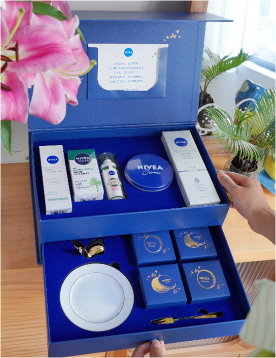 礼盒包含妮维雅一罐多用的经典蓝罐,为肌肤提供持续滋养,时刻保湿润泽;有净澈控油款「小气泡」洁面净澈毛孔,令油皮不闷、敏皮安心,越洗越稳定;还有丝滑莹润双管身体精华,双管齐下内外兼修,丝享精华级嫩肤;更有LUMINOUS630淡斑焕白精华,从根源抑黑,焕显肌肤白·透·嫩。此外礼盒还包含妮维雅男士植力赋原修护多效精华乳,为男士肌肤紧致赋活,平滑糙皮焕亮暗沉,得到舒缓真修护!